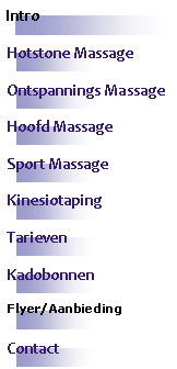 Ik ben Jacqueline Kranenburg geboren op 10 maart 1960. Sinds 2008 ben ik in het bezit van het diploma sport- en ontspanningsmassage. Door de interesse voor het massagevak ben ik allerlei cursussen en workshops gaan volgen. Mijn kracht zit in de combinatie van kennis, ervaring en intuďtie waarbij ontspanning centraal staat. |